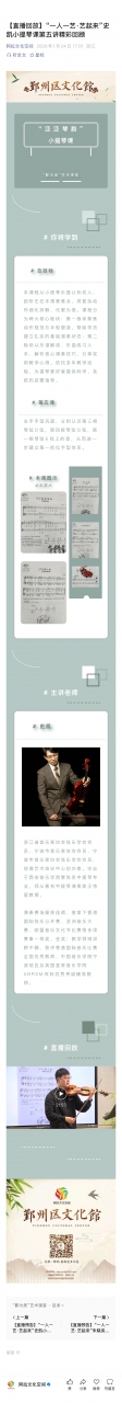 【直播预告】“一人一艺·艺起来”史凯小提琴课第五讲即将播出