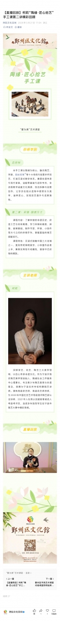 【直播回放】柯莉“陶缘·匠心拾艺”手工课第二讲精彩回顾