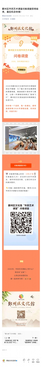 鄞州区市民艺术课堂问卷调查即将结束,最后机会快填!