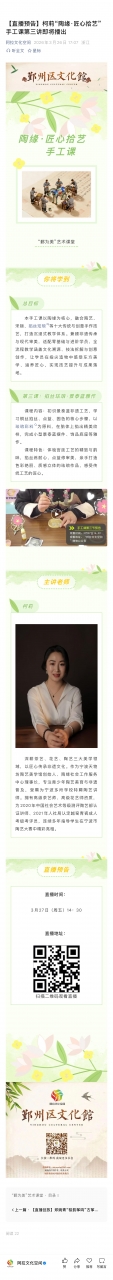 【直播预告】柯莉“陶缘·匠心拾艺”手工课第三讲即将播出