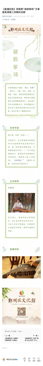 【直播预告】郑婉青“骏韵筝鸣”古筝提高课第三讲即将播出