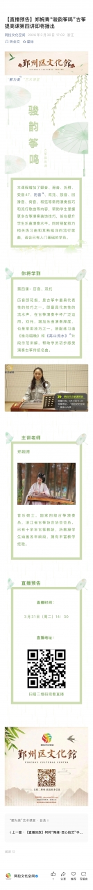 【直播预告】郑婉青“骏韵筝鸣”古筝提高课第四讲即将播出