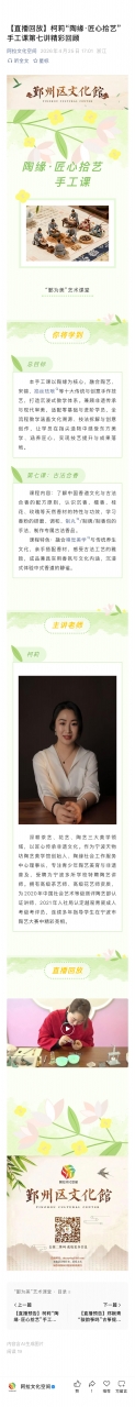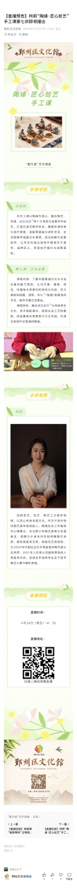 【直播预告】柯莉“陶缘·匠心拾艺”手工课第七讲即将播出